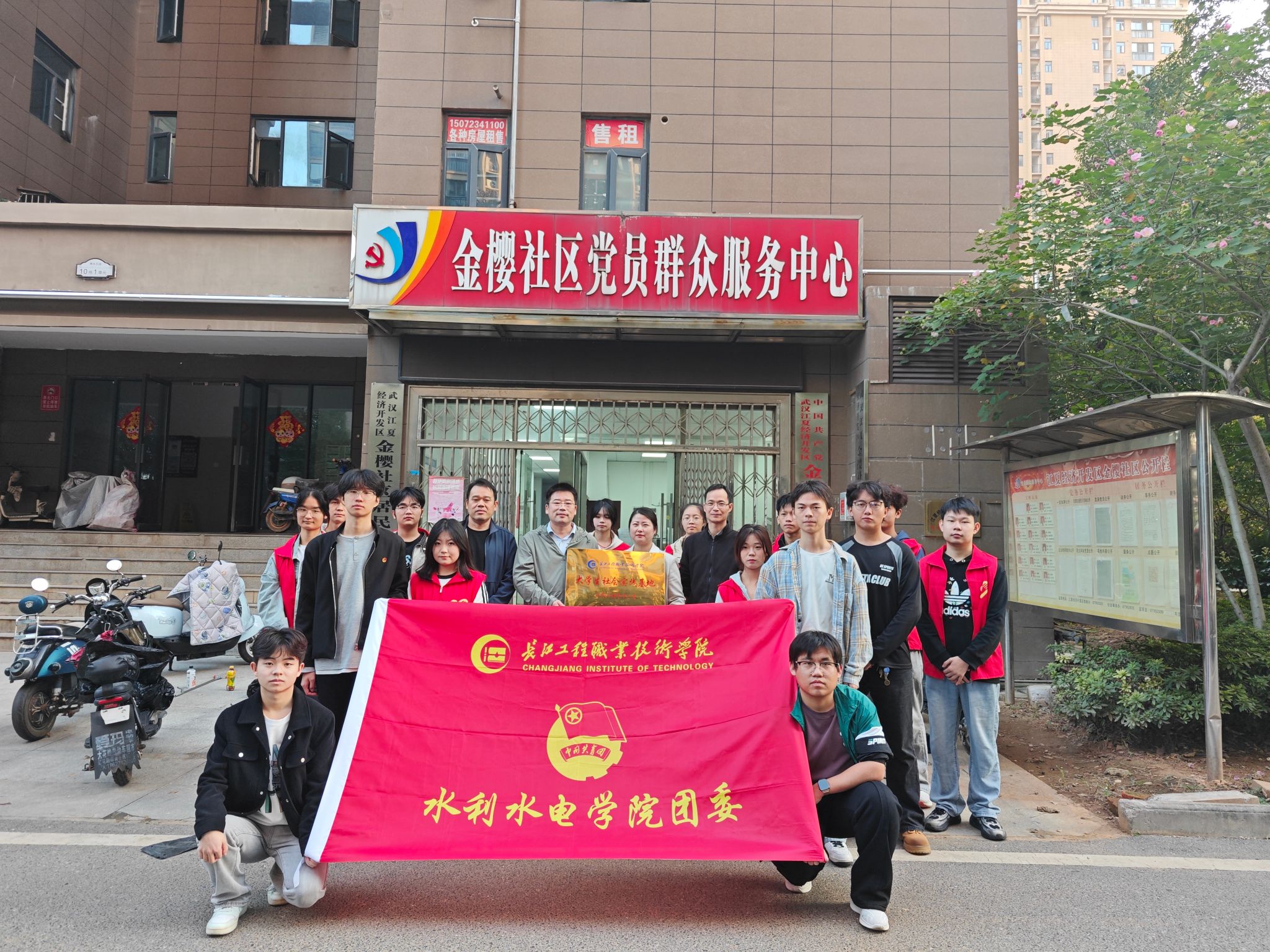 为进一步深化学校与社区融合联动,发挥校地融合、社区育人效能、拓展学生志愿服务平台,共同探索校社合作的创新发展,校团委书记杜捷涌、水利学院党总支书记徐茂林、学工秘书毛钧及20名志愿者走进江夏区金樱社区开展校社共建挂牌活动。
