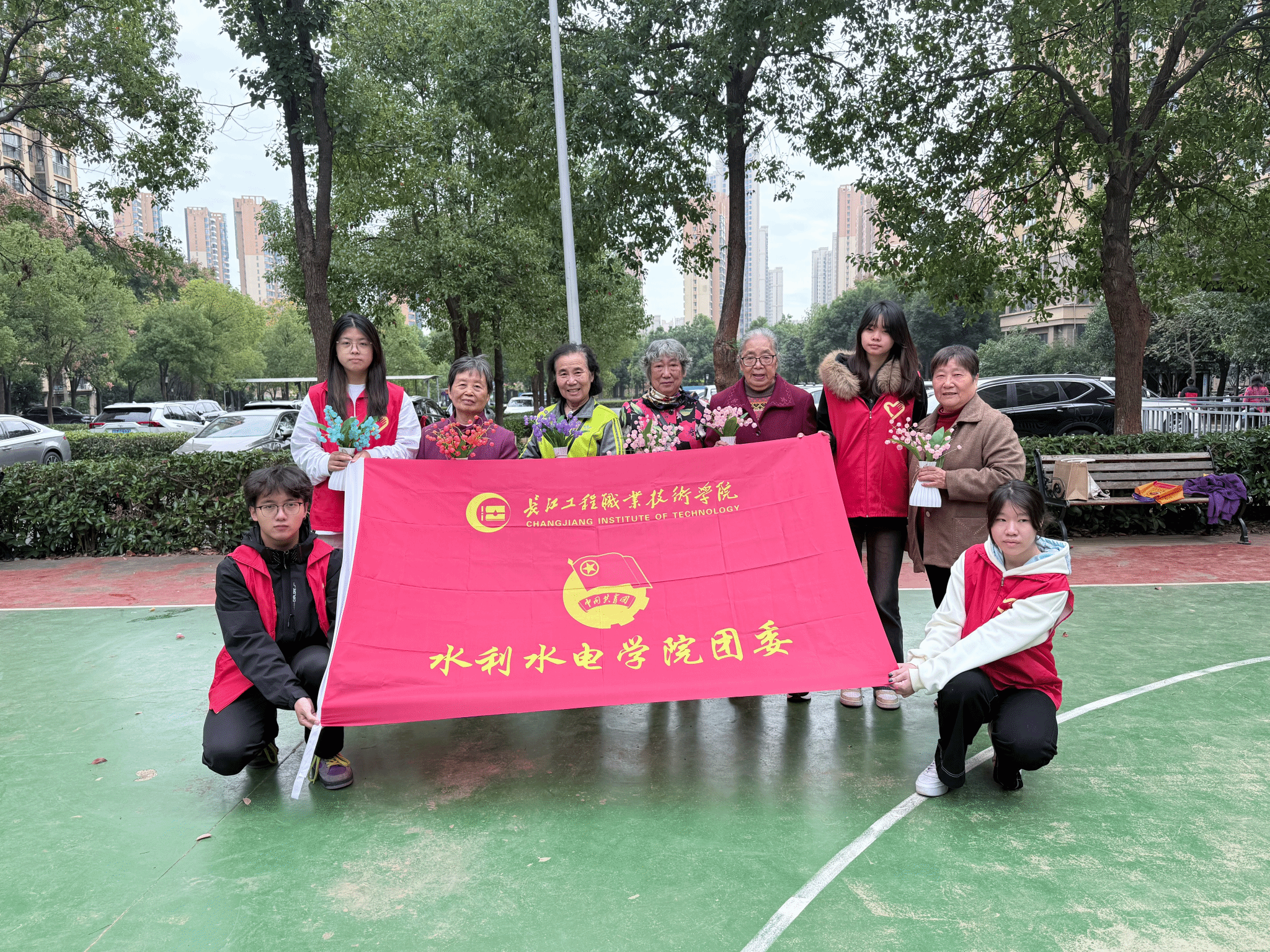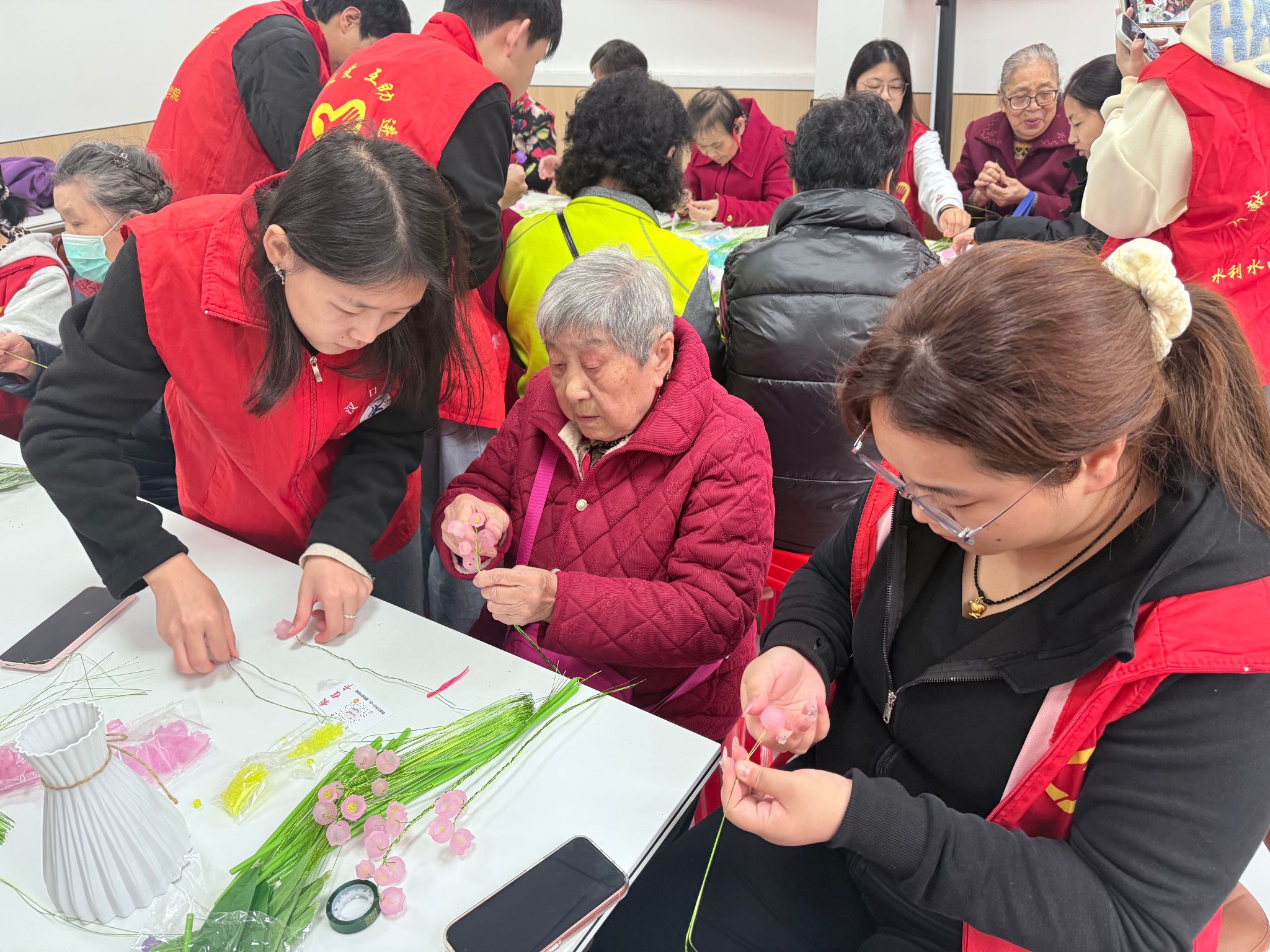 11 月 12 日,金樱社区居民活动室暖意融融、笑语盈盈,水利水电学院志愿者与社区老年居民齐聚一堂,共同参与“敬老爱老”主题手工花艺活动,用指尖创意编织温馨时光,为老年群体送上贴心关怀与陪伴。