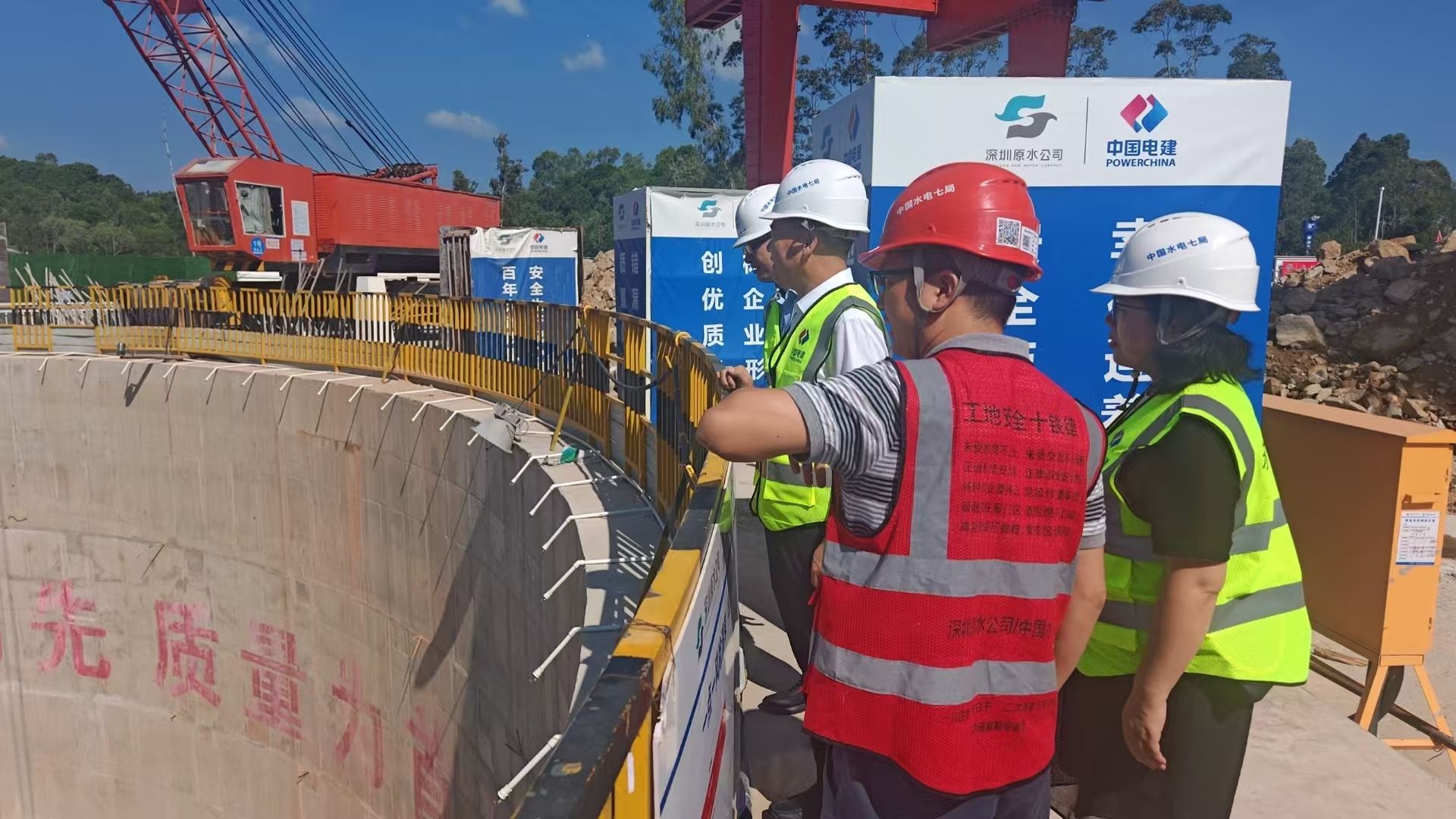 2025 年10月15日,长江工程职业技术学院党委副书记、校长杨道远一行前往中电建七局南方建设有限公司开展深化校企合作座谈交流,并实地调研深圳市公明水库-清林径水库连通工程(以下简称 “公清项目”),旨在进一步深化校企协同共建,探索人才培养与项目建设深度融合的新路径。水利水电学院院长邹林、办公室主任付志伟陪同调研。