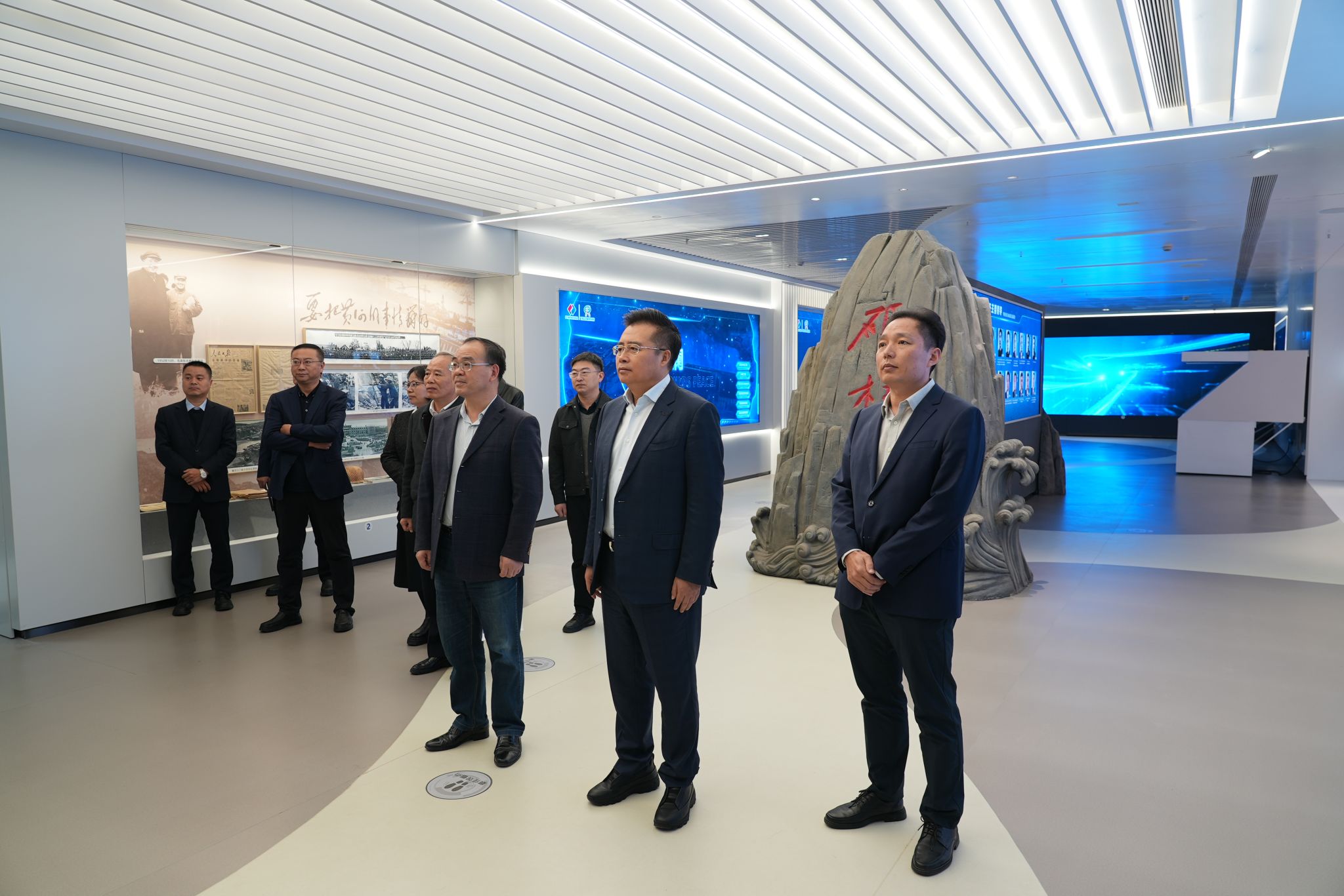 十一局党委副书记李朝晖、副局长张喜林等带领党委书记向家文一行调研了局文化馆,在文化馆,调研团队详细了解了十一局的发展历史、主营业务、承建的国内外具有重大影响力的工程建设项目,以及公司“自强不息、勇于超越”的企业精神和“做强国际、做优国内”的发展战略。