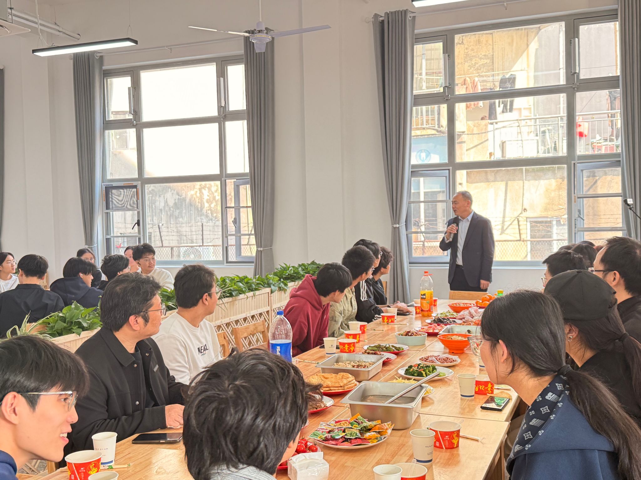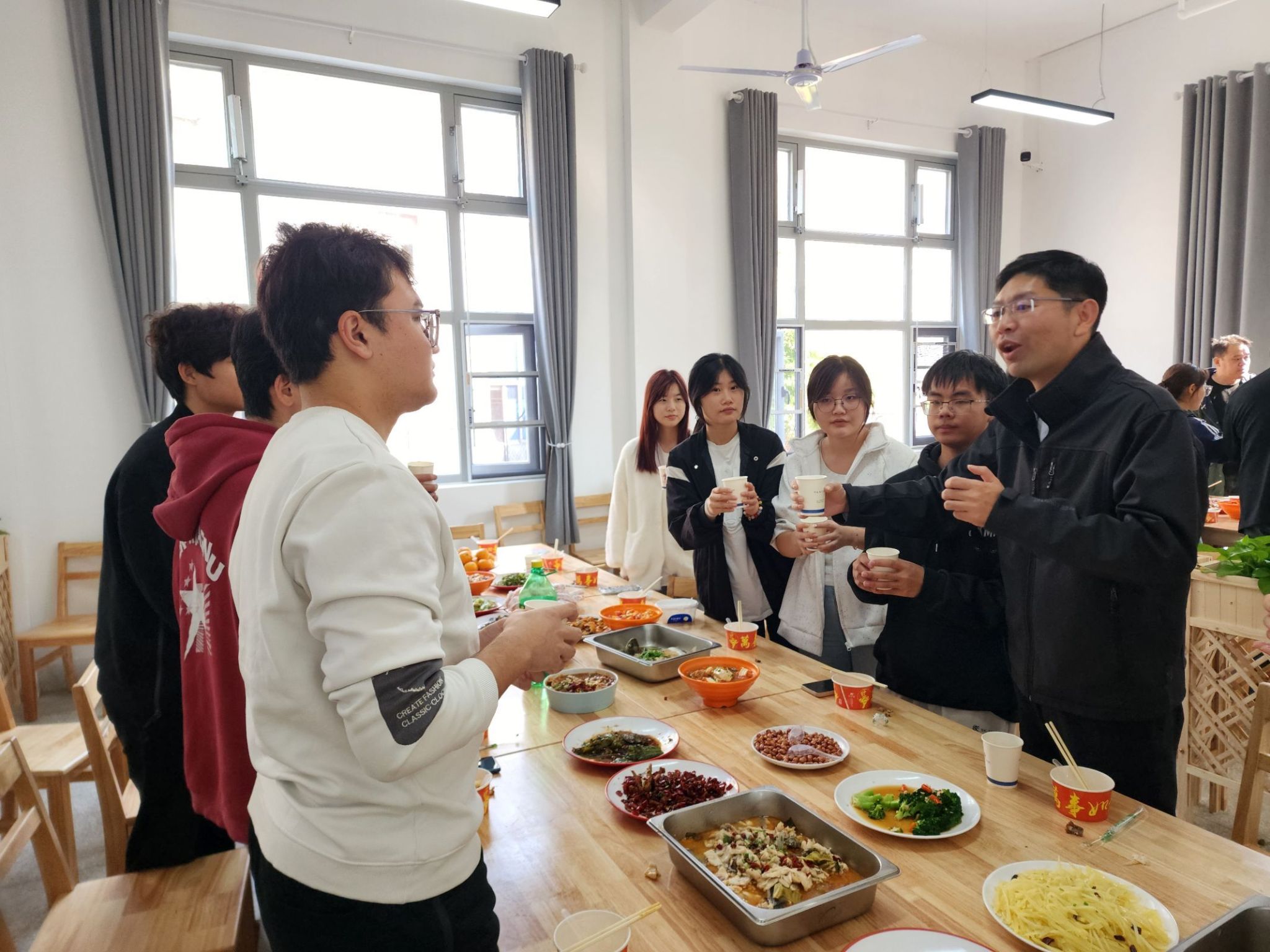 2025年11月15日上午,由水利水电学院承办的第二期"匠心家宴"活动在长江新城校区三味堂二楼圆满举行。校长杨道远、副校长卢俊莅临活动现场,与水利工程2501班43名学生共同开展了这场温馨的实践育人活动。校区管委会、党委学生工作部、后勤管理处、水利水电学院等干部教师共同参加活动。
