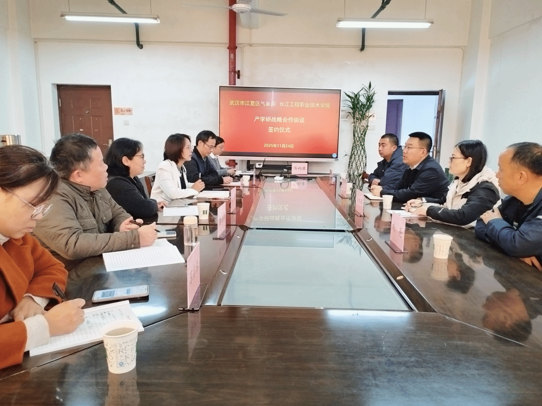 签约仪式上,双方领导发表了热情洋溢的讲话,表达了对此次合作的高度重视和殷切期望,结合发展目标,后续将充分发挥各自优势,在实训基地建设、人才培养、科技创新、技术研发、成果转化等方面开展更加深入的合作。双方代表郑重地签署了产学研战略合作协议,这份协议不仅承载着双方的合作意愿,更为未来携手为江夏区的防灾减灾、水生态保护与修复奠定了坚实的基础。